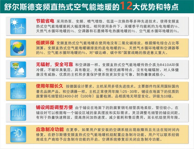 系統(tǒng)在環(huán)境溫度-35℃~43℃之間能正常工作,廣泛應用于住宅( 公寓樓/別墅排屋/自建房等 )、小區(qū)配套、辦公室、醫(yī)院、療養(yǎng)院、浴室、高端賓館等場所的冬季采暖。