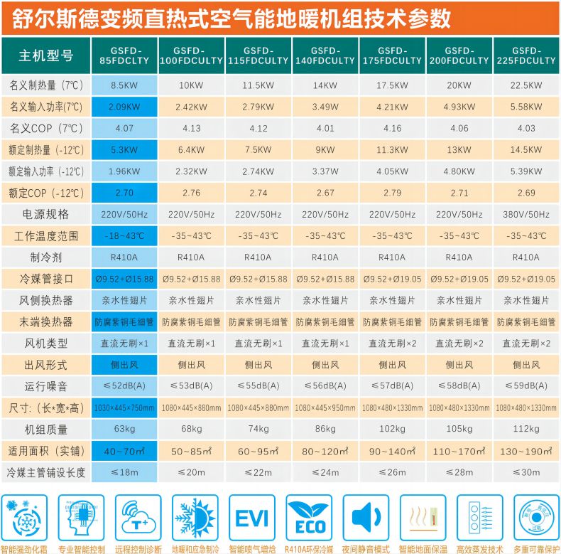 變頻直熱式空氣能地暖系統(tǒng)當前位置:首 頁 > 產(chǎn)品信息 > 主機GSFD-85FDCLTY / 采暖40~75㎡
