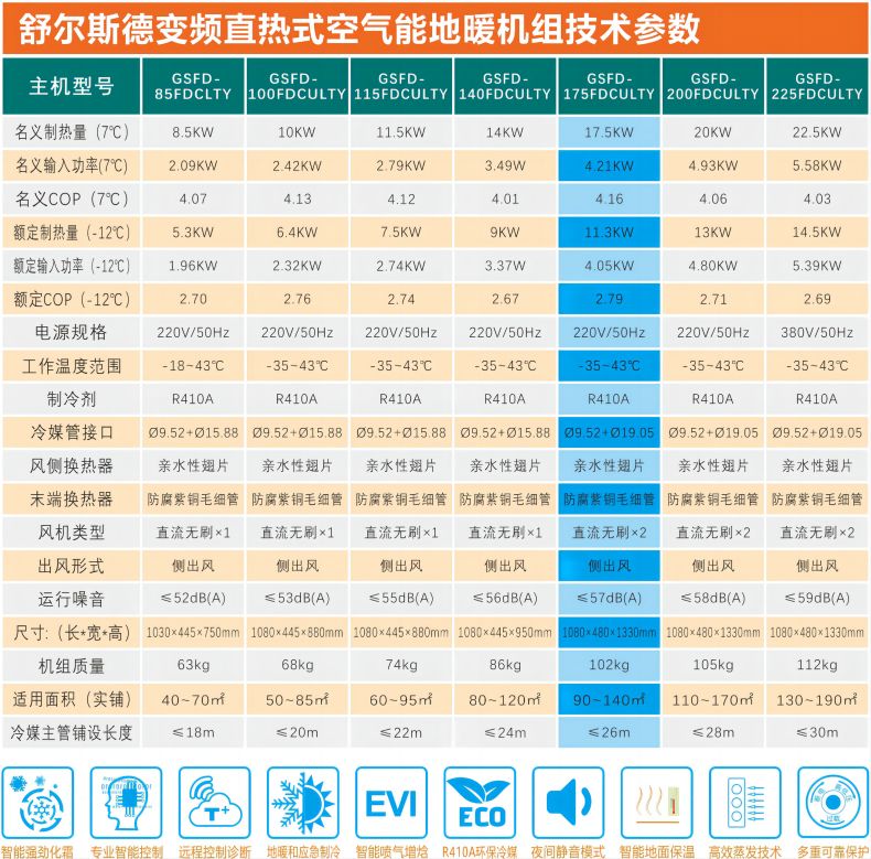 變頻直熱式空氣能地暖系統(tǒng)當(dāng)前位置:首 頁 > 產(chǎn)品信息 > 主機GSFD-175FDCULTY / 采暖90~140㎡