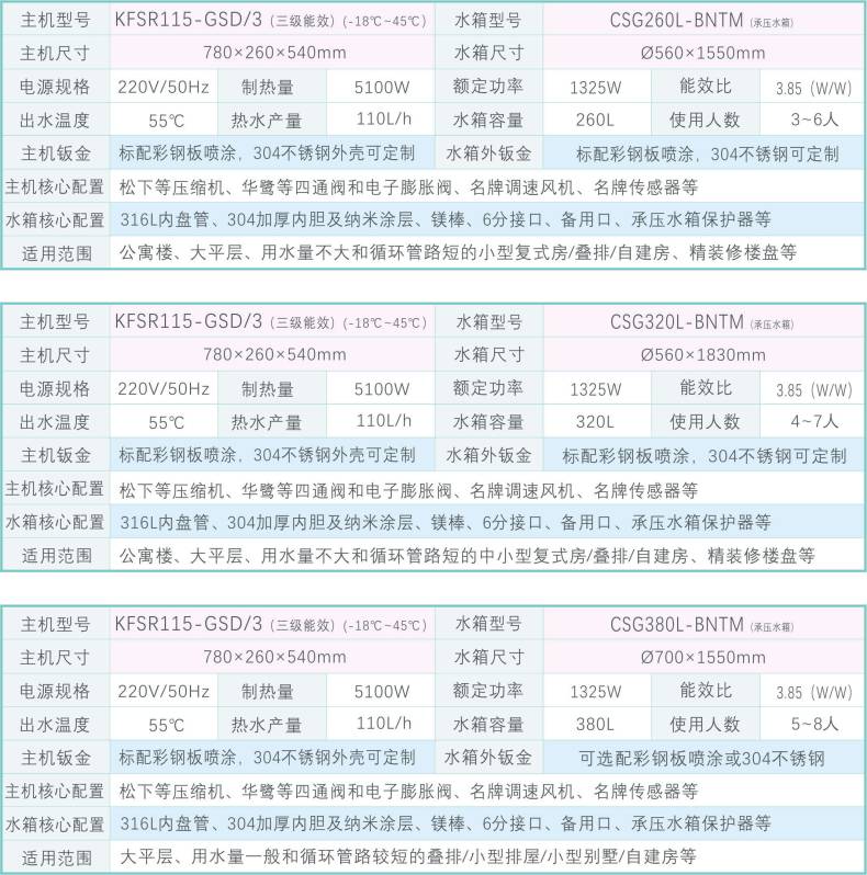 主機(jī)1.5匹/水箱260~380升