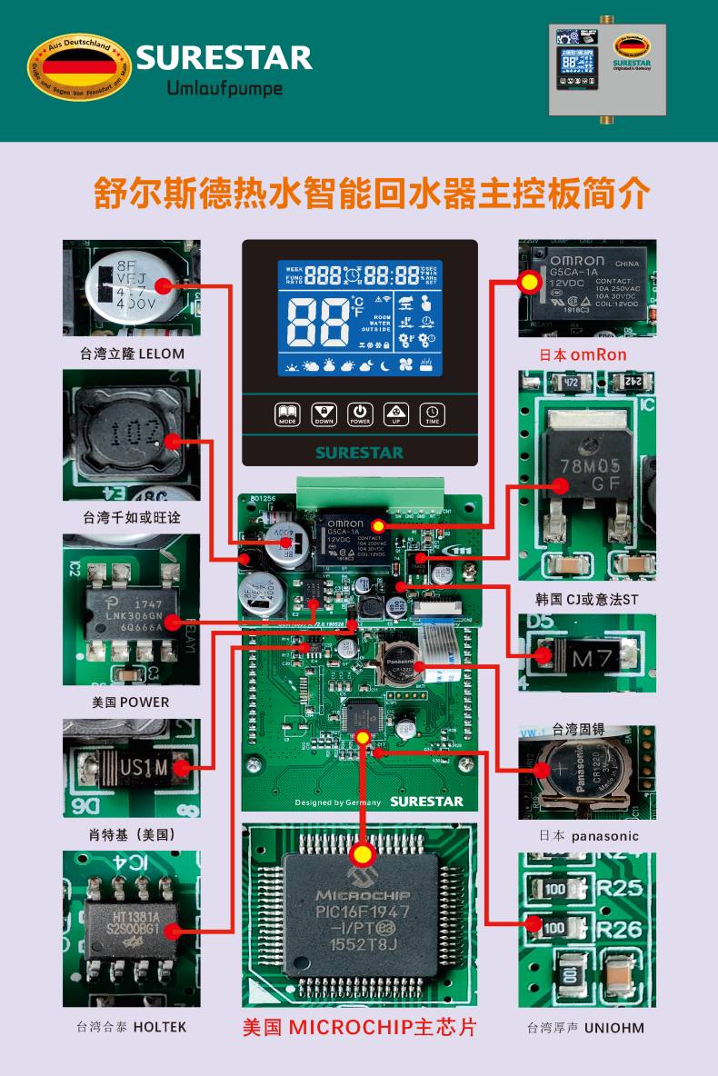 舒爾斯德熱水智能循環(huán)設(shè)備(回水器)配置品質(zhì)優(yōu)秀的舒爾斯德冷熱水循環(huán)泵(屏蔽泵),全功能微電腦控制系統(tǒng)由德國(guó)舒爾斯德暖通科技設(shè)備有限公司設(shè)計(jì),外觀新穎,采用時(shí)尚的觸摸式按鍵,電子線路設(shè)計(jì)科學(xué),可靠性強(qiáng),選用工業(yè)級(jí)以上電子元器件。重要元器件選用美國(guó)、日本、德國(guó)、臺(tái)灣等知名品牌,確保設(shè)備24小時(shí)全天候不間斷工作。本熱水智能循環(huán)設(shè)備(回水器)適用于工商業(yè)及舒適家居等智能熱水循環(huán)系統(tǒng)。
